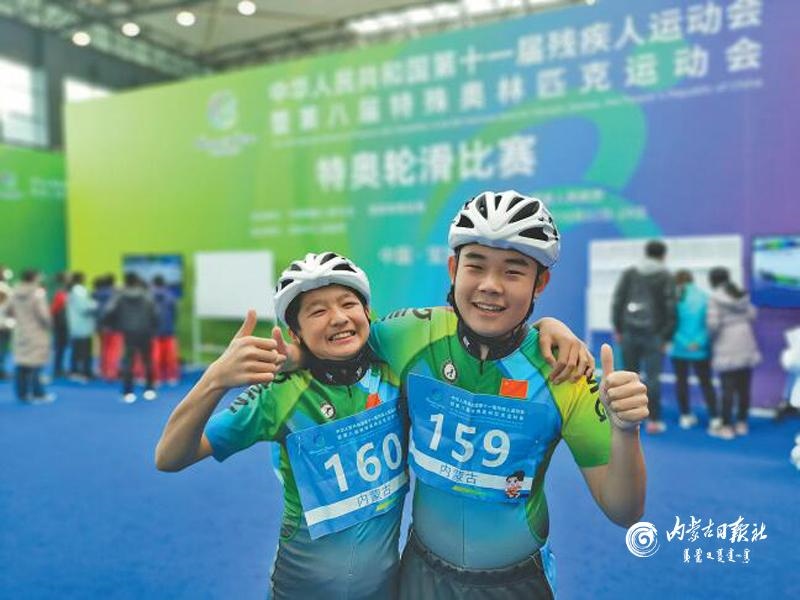 10月27日,特奧輪滑比賽16—20歲組男子2×200米接力比賽中,內(nèi)蒙古運動員閆俊杰、趙鑫格獲得金牌。