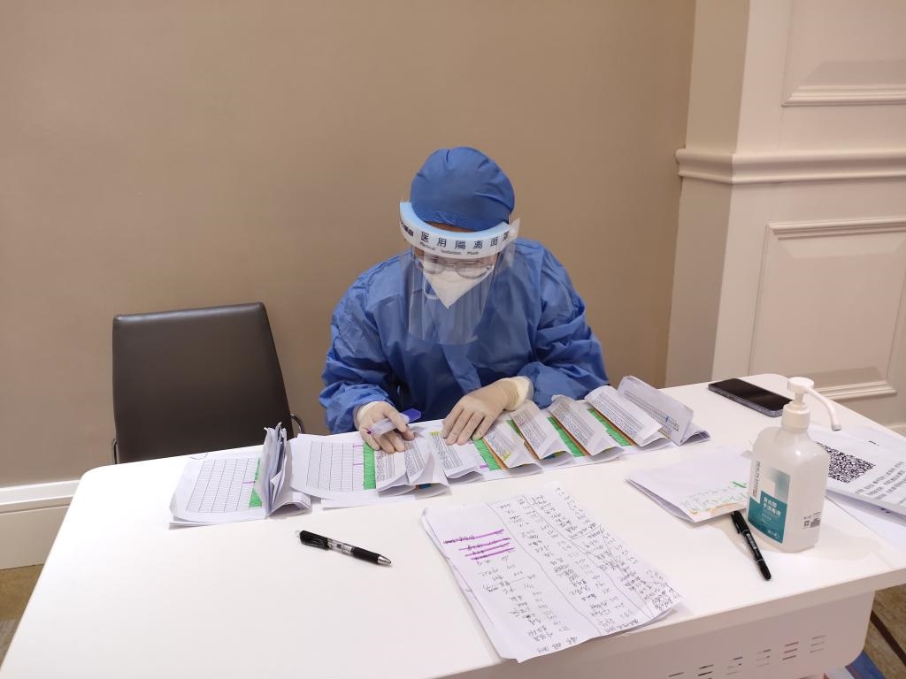 劉暢在隔離酒店統(tǒng)計(jì)人員防疫情況(圖片由受訪者提供)