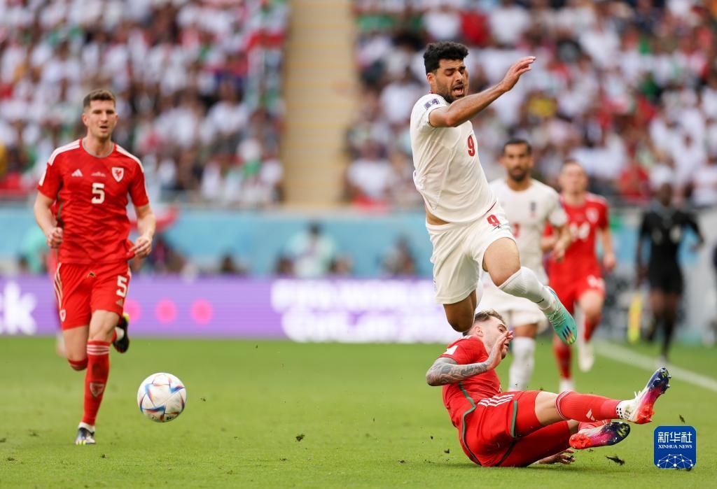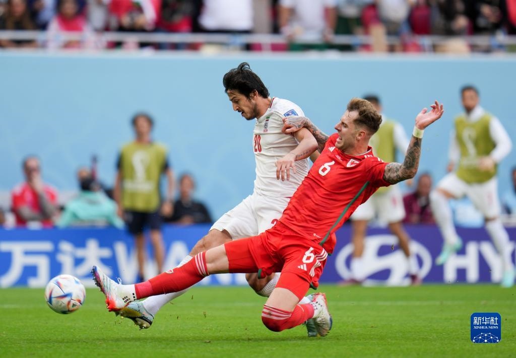 當(dāng)日,在卡塔爾多哈艾哈邁德·本·阿里體育場進(jìn)行的2022卡塔爾世界杯足球賽B組比賽中,伊朗隊(duì)以2比0戰(zhàn)勝威爾士隊(duì)。