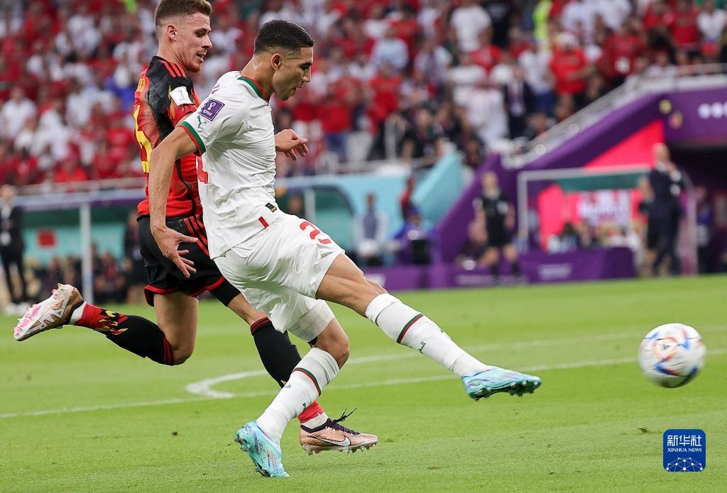 11月27日,摩洛哥隊球員阿什拉夫(右)射門。新華社記者 王東震 攝
