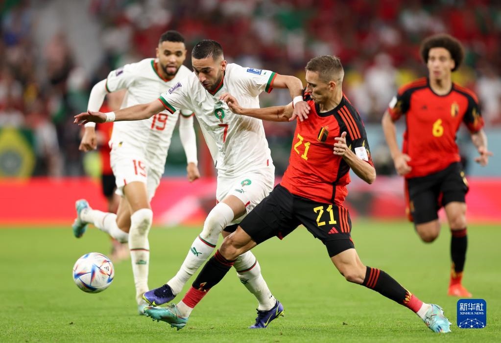 當日,在卡塔爾多哈阿圖瑪瑪球場進行的2022卡塔爾世界杯足球賽F組比賽中,比利時隊以0比2不敵摩洛哥隊。