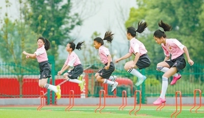 四川省華鎣市在全市34所中小學(xué)校成立了65支女子足球隊,包含1000余名運動員。近年來,當(dāng)?shù)赝七M(jìn)體教融合,積極傳授足球知識,每周安排1節(jié)足球課,每年寒暑假免費開設(shè)為期1個月的足球?qū)S?xùn)班和普及班;舉辦足球賽事,每年舉行一次全市性的校園足球賽。華鎣市多措并舉,讓孩子們提高身體素質(zhì)和運動技能,享受運動樂趣。