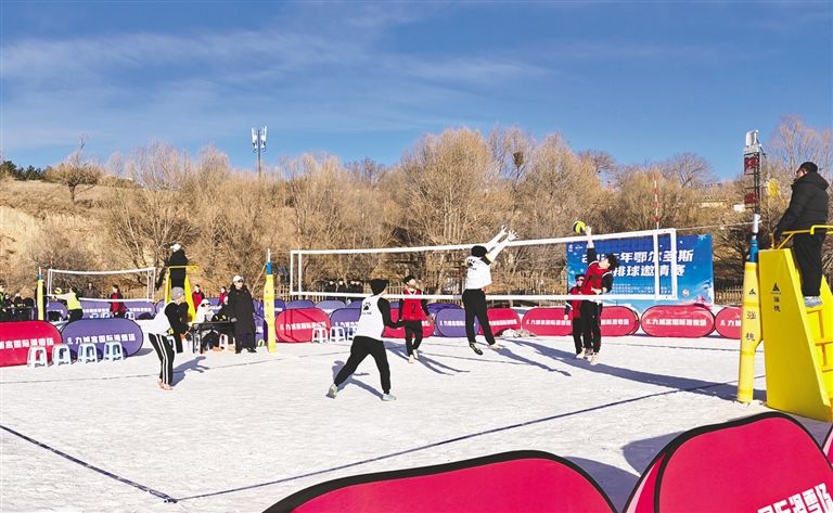 1月16日,2026年鄂爾多斯雪地排球邀請賽在東勝區(qū)九城宮國際滑雪場激情開賽。比賽采用3人制,分設(shè)男子組與女子組,共吸引來自寧夏、天津、北京等八省區(qū)市60多名運動員參賽。(記者 布音額尼爾樂 攝)