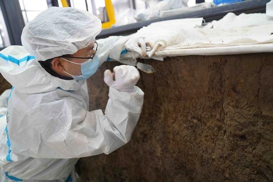 在三星堆遺址,考古發(fā)掘現(xiàn)場被大跨度鋼結(jié)構(gòu)大棚覆蓋,里面有數(shù)個“考古發(fā)掘艙”,不僅能控制溫度、濕度,還能減少工作人員從外界帶入的物質(zhì)干擾。而眼前的考古工作者,更像在實(shí)驗(yàn)室工作,穿著全副武裝的白色“防護(hù)服”,趴在“非接觸式裝置”上,懸在祭祀坑上方,拍照、清理……頗有科幻電影的即視感。