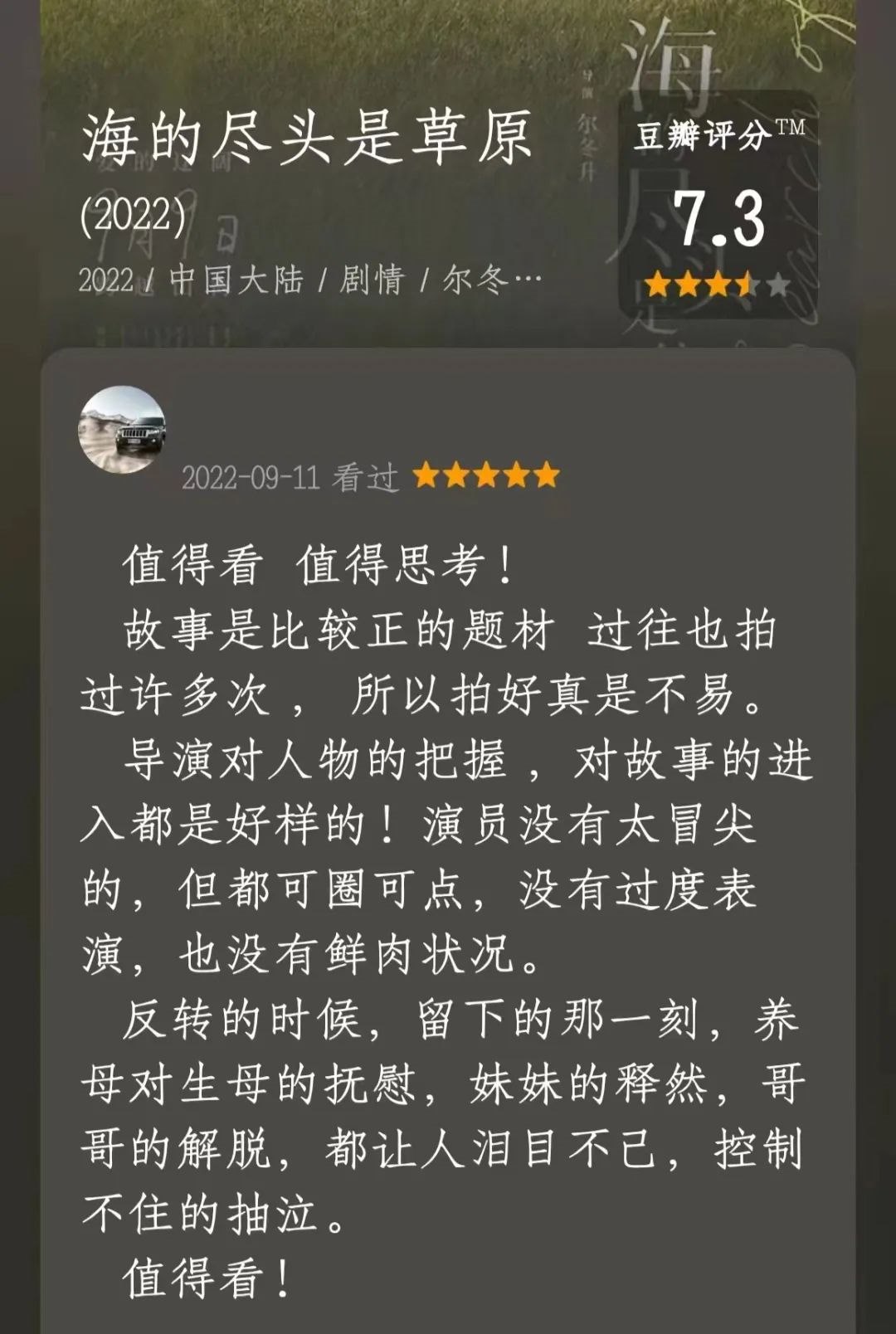 9月9日《海的盡頭是草原》溫情上映,豆瓣評分一度高達7.9分!