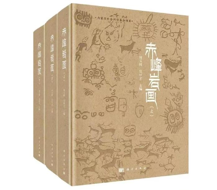 《赤峰巖畫》一套三冊,是內(nèi)蒙古鴻德文理學(xué)院北方巖畫研究所8年田野調(diào)查的結(jié)晶,收錄了赤峰地區(qū)不同時期、不同形制的古代巖畫,涉及巖畫山84座、整體巖畫約5600幅,單體巖畫約12400個,其中大部分資料為首次公開。