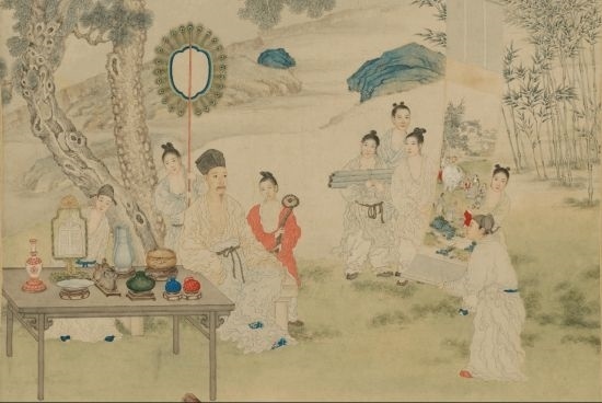 清·郎世寧《弘歷觀畫圖》軸(局部),展現(xiàn)出乾隆對(duì)古玩字畫的熱愛。(圖片來源:故宮博物院)
