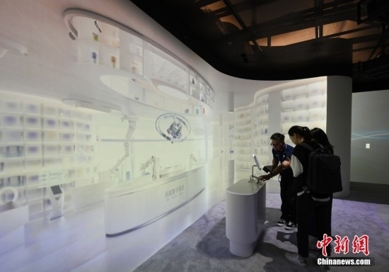 9月1日,主媒體中心展出的數(shù)字超市吸引參觀者駐足。當(dāng)日,杭州亞運(yùn)會(huì)主媒體中心舉行媒體開放日活動(dòng),現(xiàn)場亮相的科技與傳統(tǒng)文化項(xiàng)目引人體驗(yàn)。中新社記者 王剛 攝