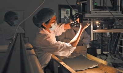 數(shù)字采集考古人員在實驗室,對三星堆出土文物進行高光譜掃描。廣漢市委宣傳部供圖