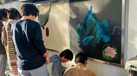 畫像小組的同學(xué)拿起手中畫筆,為團(tuán)結(jié)湖南北里社區(qū)老黨員、社區(qū)志愿者、騎手社工畫像。大家認(rèn)真描繪“模特”們和藹可親的形象,不時(shí)與“模特”聊天互動(dòng),聽他們分享自己生活中的精彩故事。除此之外,部分同學(xué)圍繞垃圾分類、廉政教育等主題為社區(qū)繪制黨建板報(bào)。通過繪制板報(bào),傳播正能量,為社區(qū)宣傳添一份力。