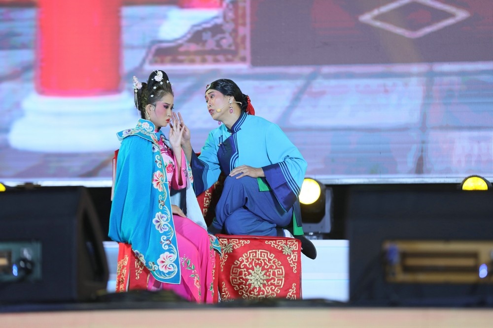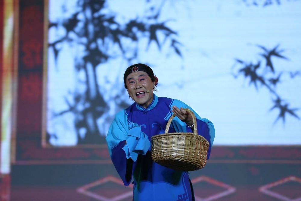 王占昕和王舜、王雨香表演二人臺傳統(tǒng)小戲《探病》