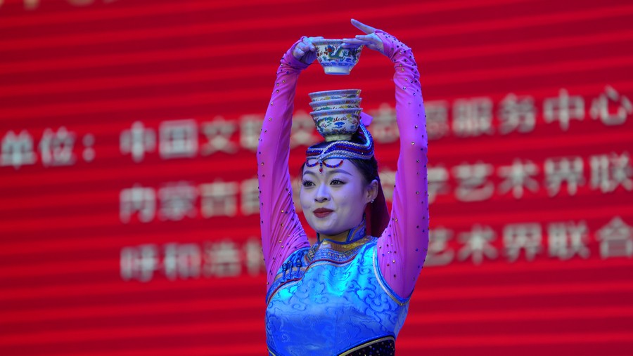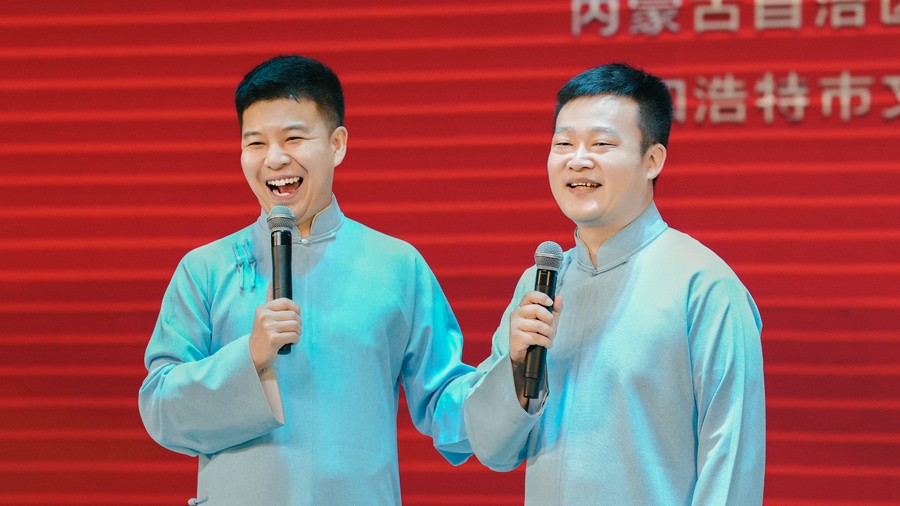 演出在舞步奔放、節(jié)奏明快的群舞《輝煌》中拉開帷幕,文藝志愿者們各展才藝,節(jié)目形式多樣,涵蓋了歌舞、小品、雜技、二人臺、呼麥等多種藝術(shù)形式。相聲《開心一刻》幽默詼諧,演員妙語連珠,引得觀眾笑聲不斷;小品《一路風(fēng)情走青城》聚焦日常點滴,用接地氣的故事展現(xiàn)呼市新風(fēng)貌,讓人倍感親切;歌曲《請到草原來》《歌在飛》《歌游內(nèi)蒙古》,文藝志愿者們用嘹亮歌聲傳遞對家鄉(xiāng)、對祖國的熱愛;二人臺對唱《掛起紅燈拜新年》、呼麥《馬群贊》飽含深情;藝體表演《武動乾坤》、雜技《鍋碗瓢盆交響曲》創(chuàng)意十足,現(xiàn)場驚嘆聲此起彼伏;獨舞《雄鷹》以剛勁的肢體語言,詮釋鷹擊長空磅礴氣勢;《舞蹈美草》用輕盈的舞步展現(xiàn)原野的律動;最后,全體演員與觀眾齊聲合唱《我的祖國》,將演出推向最高潮。精彩的表演贏得了現(xiàn)場400多名觀眾的陣陣掌聲和歡呼聲,氣氛熱烈非凡。