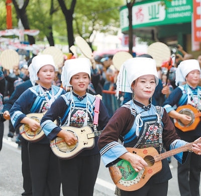 “今年,我們新增了‘布依族婚俗’方陣?!被菟h文聯(lián)副主席羅建華介紹,“婚俗具有豐富的內(nèi)容,可集中展示民族的習俗、禮儀、服飾與風物,是承載民族民間文化的綜合體。”