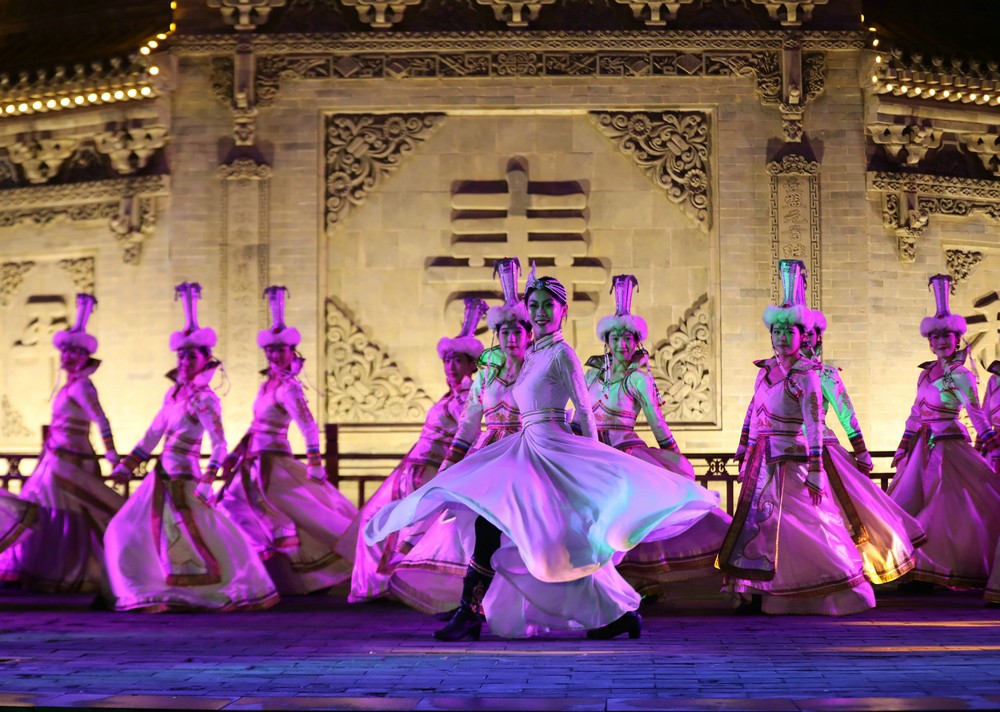 歡快的音樂聲響起,一群演員衣袂飄飄,在變幻的燈光下翩翩起舞,現(xiàn)場(chǎng)觀眾沉浸其中,隨著舞者的腳步,步入郡王府內(nèi),與演員們一起,回溯歷史,見證變遷。