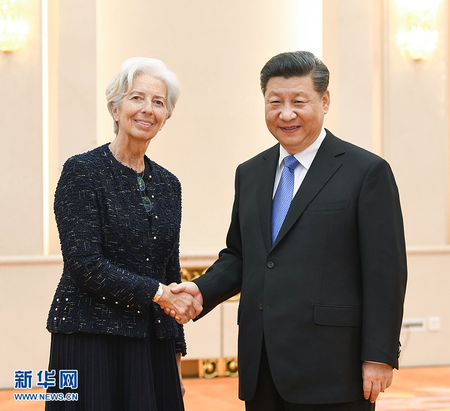 國家主席習近平24日在人民大會堂會見國際貨幣基金組織總裁拉加德。