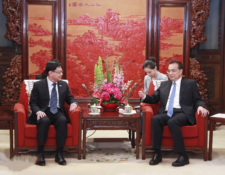 李克強表示,當前中新關系發(fā)展勢頭良好。中方愿同新方繼續(xù)密切高層交往,將“一帶一路”倡議同新方發(fā)展戰(zhàn)略更好對接,發(fā)揮好兩國副總理級雙邊合作機制作用,推進“陸海新通道”和第三方市場合作,深化貿(mào)易投資、金融、智慧城市以及中國地方省市同新加坡的合作,推動兩國關系與合作再上新臺階。