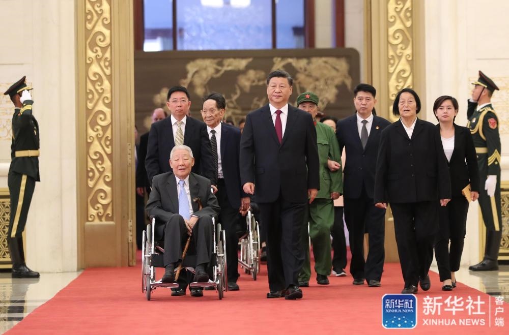 王滬寧宣讀習(xí)近平簽署的中華人民共和國(guó)主席令。主席令指出,為了慶祝中華人民共和國(guó)成立70周年,隆重表彰為新中國(guó)建設(shè)和發(fā)展作出杰出貢獻(xiàn)的功勛模范人物,弘揚(yáng)民族精神和時(shí)代精神,根據(jù)第十三屆全國(guó)人民代表大會(huì)常務(wù)委員會(huì)第十三次會(huì)議的決定,授予于敏等8人共和國(guó)勛章,授予勞爾·卡斯特羅·魯斯等6人友誼勛章,授予葉培建等28人國(guó)家榮譽(yù)稱號(hào)。