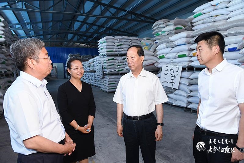 7月14日,自治區(qū)黨委書記、人大常委會(huì)主任石泰峰深入烏蘭察布市四子王旗景欣農(nóng)業(yè)有限公司,了解生產(chǎn)經(jīng)營及帶貧增收情況。內(nèi)蒙古日報(bào)社融媒體記者 袁永紅 攝