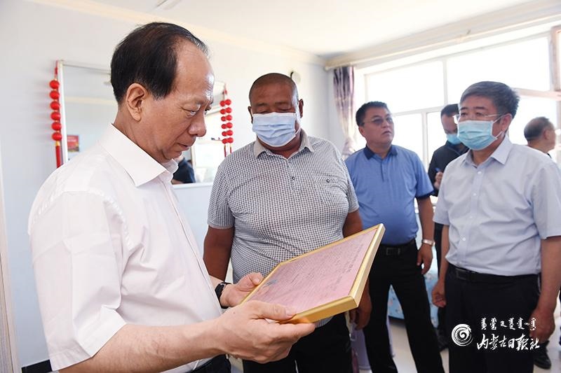 7月14日,自治區(qū)黨委書記、人大常委會(huì)主任石泰峰深入烏蘭察布市四子王旗吉生太鎮(zhèn)糖坊卜子行政村下坤兌新村,走訪貧困戶了解生產(chǎn)生活情況。內(nèi)蒙古日報(bào)社融媒體記者 袁永紅 攝