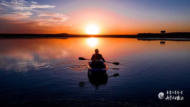 山氣日夕佳,飛鳥相與還。盛夏時(shí)節(jié),鄂爾多斯遺鷗國家級(jí)自然保護(hù)區(qū)大批夏候鳥、留鳥進(jìn)入育雛季,成千上萬只候鳥時(shí)而盤旋云端、時(shí)而靜謐游憩。夕陽西下,水天一色、百鳥爭鳴,蔚為壯觀。