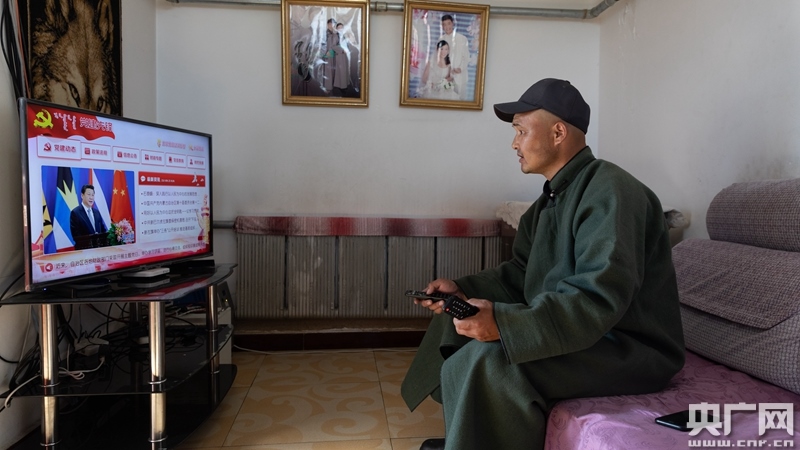 蘇尼爾通過(guò)電視平臺(tái)收看黨建平臺(tái)(中央廣播電視總臺(tái)央廣記者 王藝 攝)