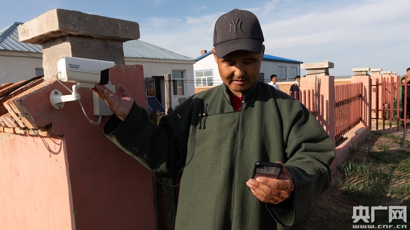 現(xiàn)在很多牧民家門(mén)口還多了360度高清攝像頭,蘇尼爾家有3000多畝草場(chǎng),無(wú)論他在哪,點(diǎn)開(kāi)手機(jī)里一款云視頻app,就可以查看草場(chǎng)的每一個(gè)角落。