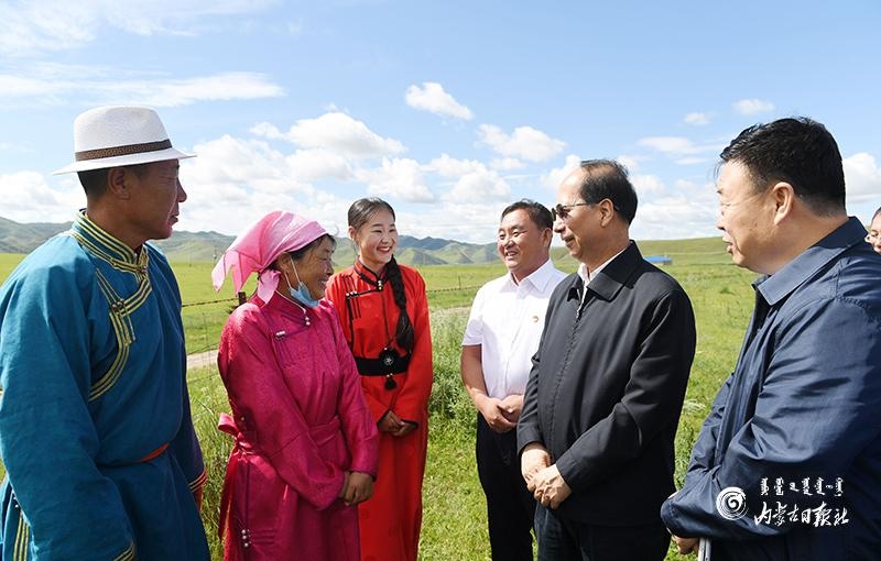 8月11日,自治區(qū)黨委書記、人大常委會(huì)主任石泰峰來到興安盟科右前旗烏蘭毛都蘇木,了解草原生態(tài)保護(hù)和牧業(yè)發(fā)展情況。內(nèi)蒙古日報(bào)記者 袁永紅 攝