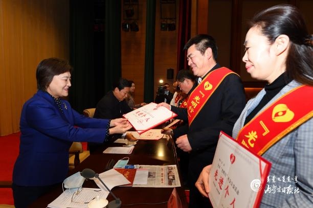 12月14日,全區(qū)“光明行”社會(huì)公益活動(dòng)總結(jié)表彰會(huì)在呼和浩特舉行。自治區(qū)主席、紅十字會(huì)名譽(yù)會(huì)長、全區(qū)“光明行”社會(huì)公益活動(dòng)組委會(huì)主任委員布小林為受表彰代表頒發(fā)榮譽(yù)證書。內(nèi)蒙古日?qǐng)?bào)記者 金泉 攝