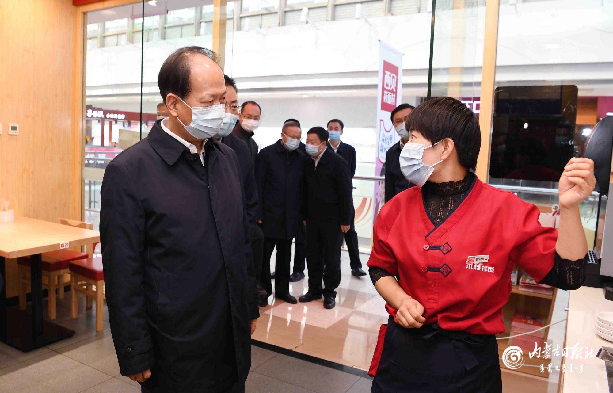 10月26日,自治區(qū)黨委書記、人大常委會主任石泰峰來到新華大街萬達廣場,檢查防控措施落實情況。內(nèi)蒙古日報社融媒體記者 袁永紅 攝