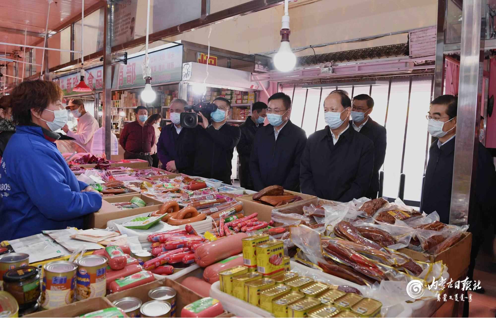 10月26日,自治區(qū)黨委書記、人大常委會主任石泰峰來到東瓦窯農(nóng)副產(chǎn)品批發(fā)市場,與購物市民一起接受體溫檢測。在水產(chǎn)海鮮和肉食大廳,他認真察看防控措施落實情況。內(nèi)蒙古日報社融媒體記者 袁永紅 攝