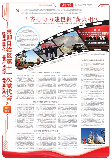 這里是習(xí)近平總書記指出的內(nèi)蒙古創(chuàng)造了“齊心協(xié)力建包鋼”歷史佳話的地方;這里曾見證了在黨和國(guó)家領(lǐng)導(dǎo)下,來(lái)自祖國(guó)四面八方的8萬(wàn)多各族兒女匯聚塞外,以戰(zhàn)天斗地的氣魄和人定勝天的信念在北疆荒漠建成草原鋼城的火紅歲月。如今,在習(xí)近平新時(shí)代中國(guó)特色社會(huì)主義思想指引下,新一代包鋼人賡續(xù)紅色血脈,從2016年到2021年,用了五年時(shí)間,戰(zhàn)巨虧,渡難關(guān),以前所未有的改革勇力和百折不撓的攻堅(jiān)勇氣,使企業(yè)起死回生、涅槃重生,從營(yíng)業(yè)收入上創(chuàng)造出用五年時(shí)間再造兩個(gè)包鋼的奇跡,在內(nèi)蒙古這片熱土上續(xù)寫了“齊心協(xié)力建包鋼”的新時(shí)代篇章。