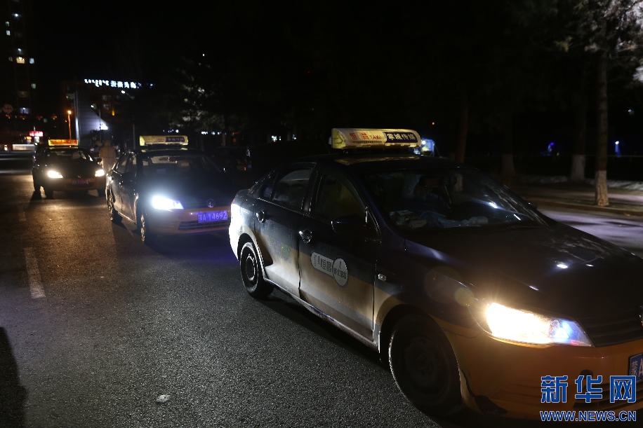 2月20日晚9點(diǎn),前往指定地點(diǎn)運(yùn)送樣本的出租車排起了長(zhǎng)隊(duì),完成這一次運(yùn)送,司機(jī)們當(dāng)天的任務(wù)就完成了。新華網(wǎng)發(fā) 李倩攝