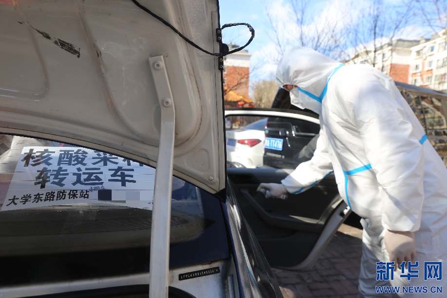 到達(dá)核酸采樣點(diǎn)后,籍東斌在工作人員取樣本間隙對(duì)車輛進(jìn)行消殺。核酸樣本轉(zhuǎn)運(yùn)存在著一定風(fēng)險(xiǎn)性,籍東斌說,只要按要求做好防護(hù),按規(guī)定完成工作,就沒什么問題。新華網(wǎng)發(fā) 李倩攝