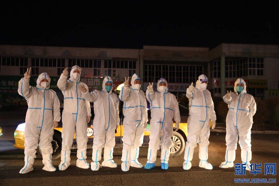 收工之前,現(xiàn)場(chǎng)部分志愿者司機(jī)們打出代表勝利的手勢(shì),希望疫情早日散去,青城重現(xiàn)活力。新華網(wǎng)發(fā) 李倩攝