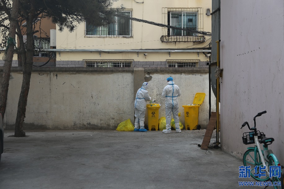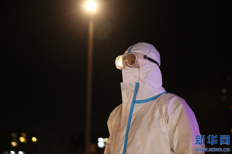 經(jīng)過連日配合,籍東斌和運(yùn)送樣本的搭檔形成了默契,一個(gè)動(dòng)作一個(gè)眼神就知道搭檔需要什么幫助?!八⊥陿颖镜怯浲曛?,我要幫助她做消殺?!奔畺|斌說。新華網(wǎng)發(fā) 李倩攝