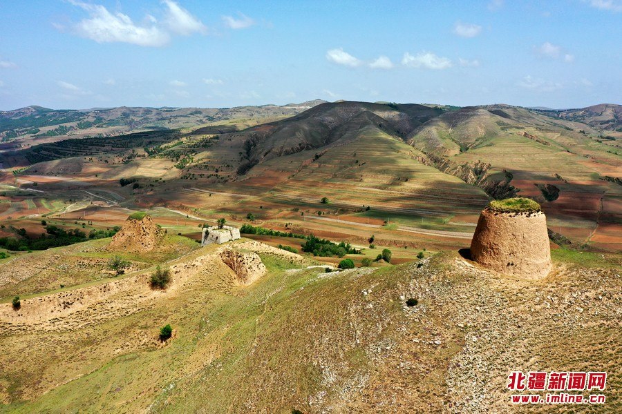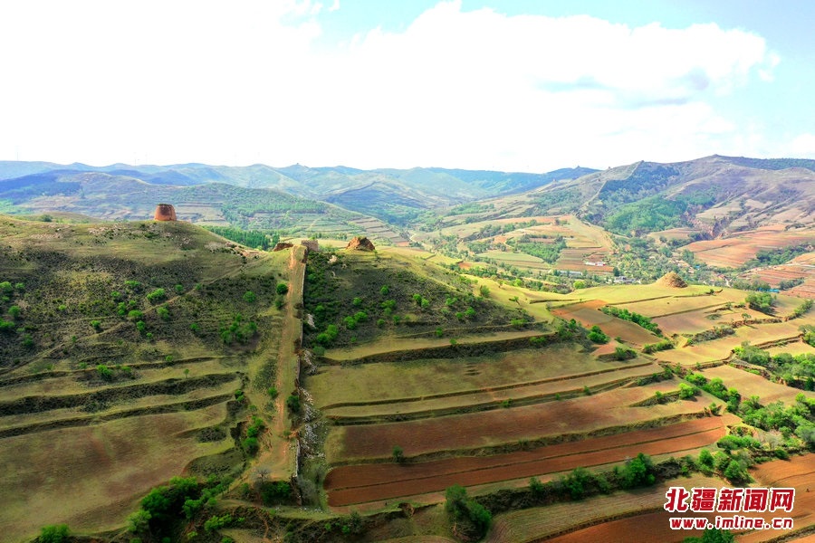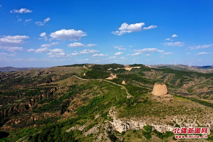 端午時(shí)節(jié),由G209國(guó)道岔口至老牛坡的公路正在緊張建設(shè)中。汽車沿著剛剛鋪好軟基的砂石路面行進(jìn),車窗外,高高低低的烽火墩臺(tái)聳立在山巒之上,巍峨雄偉,座座墩臺(tái)直沖云霄,蔚為壯觀。清水河縣明長(zhǎng)城國(guó)家文化公園的核心區(qū)小元峁段長(zhǎng)城(栜木塔長(zhǎng)城)即位于此。