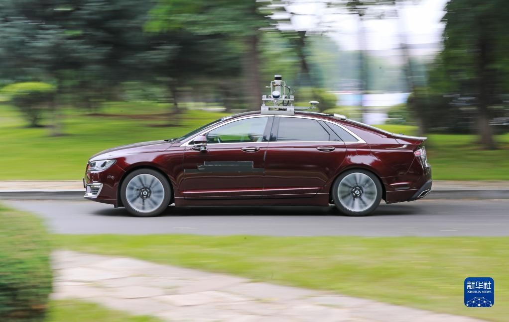 2021年7月9日,在沈陽市渾南區(qū)東軟軟件園,自動駕駛汽車在封閉道路上進行行駛測試。新華社記者 楊青 攝