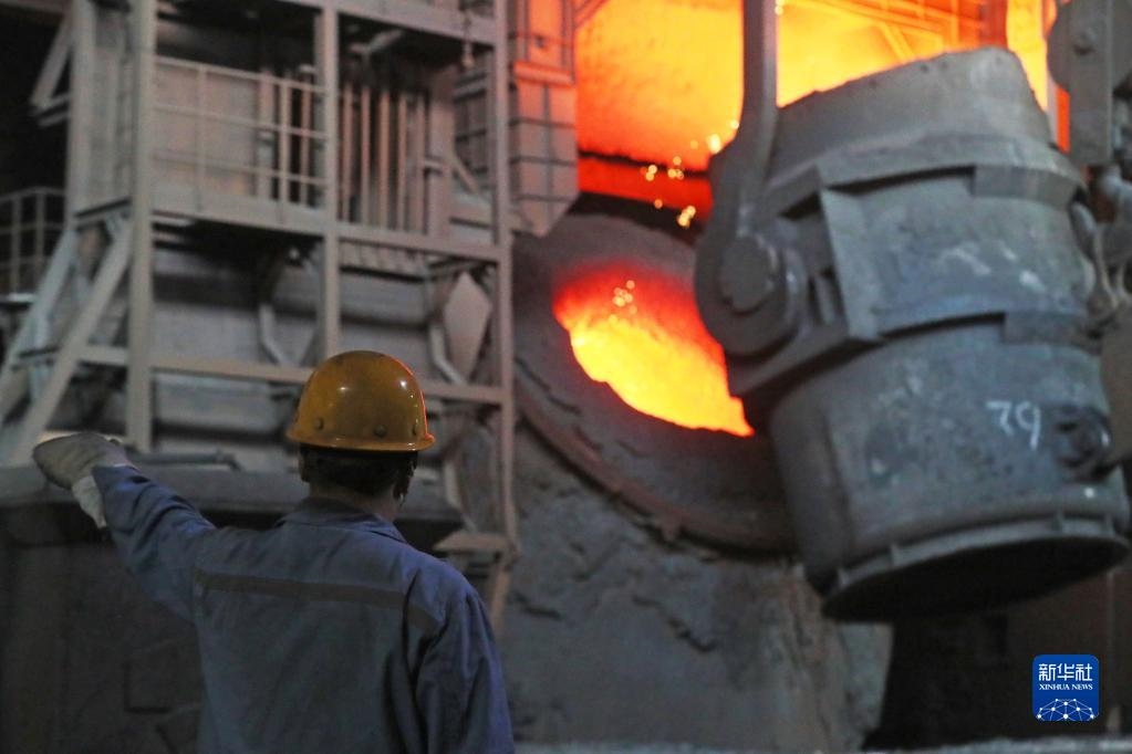 2021年8月18日,在本鋼板材煉鋼廠,煉鋼作業(yè)區(qū)工人在進行轉爐冶煉作業(yè)。新華社記者 楊青 攝