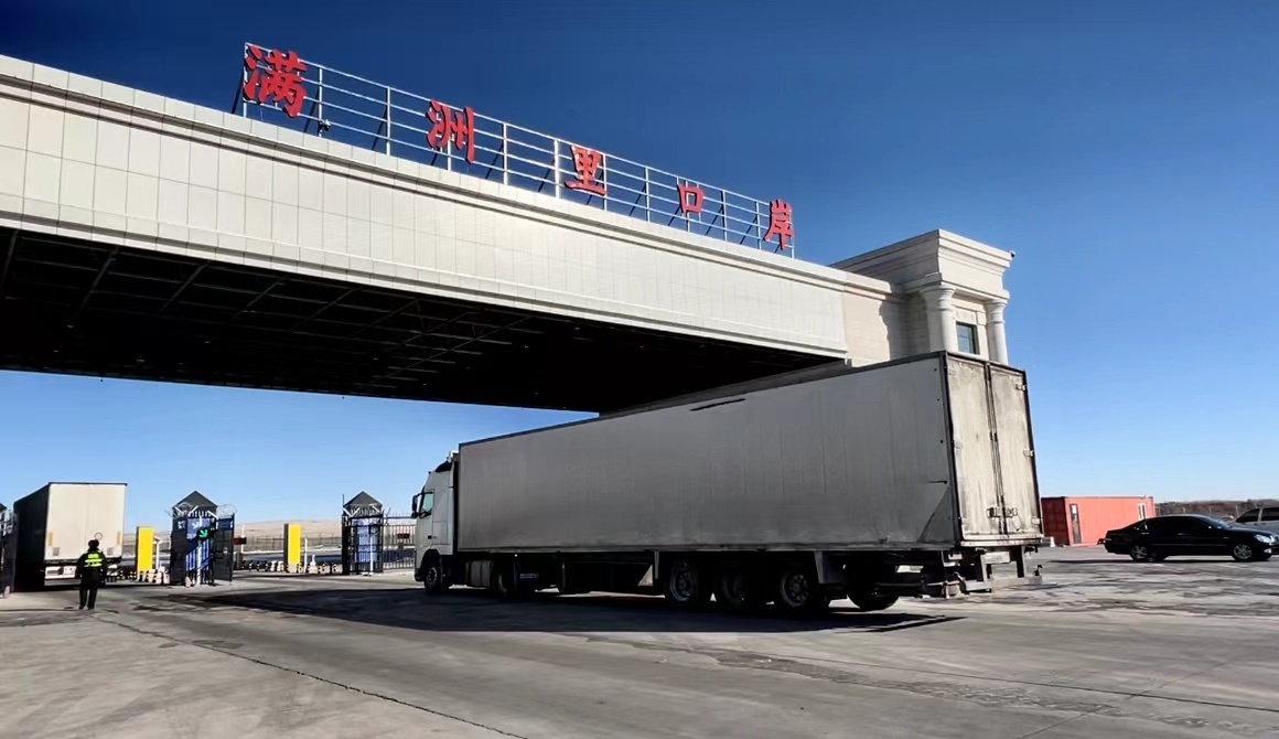 滿載果蔬的車輛,駛出滿洲里口岸。