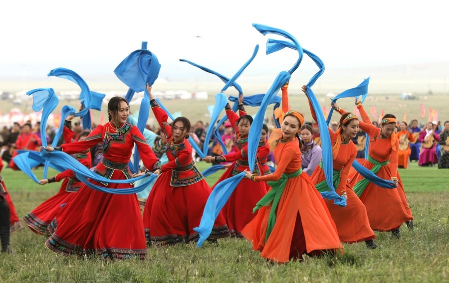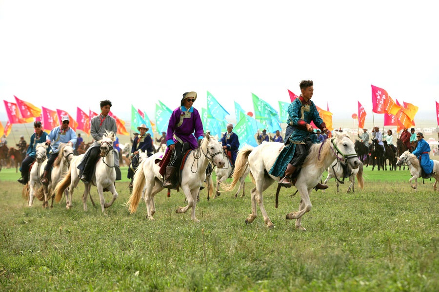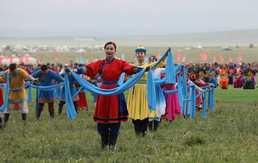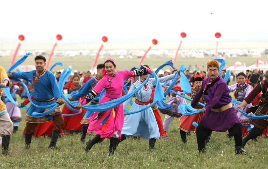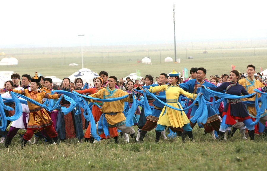7月23日,“相約草原·遇見那達(dá)慕”內(nèi)蒙古自治區(qū)第33屆旅游那達(dá)慕在錫林郭勒盟錫林浩特開幕。當(dāng)天,近10萬名觀眾和演職人員歡聚于此,載歌載舞,共慶草原盛會。