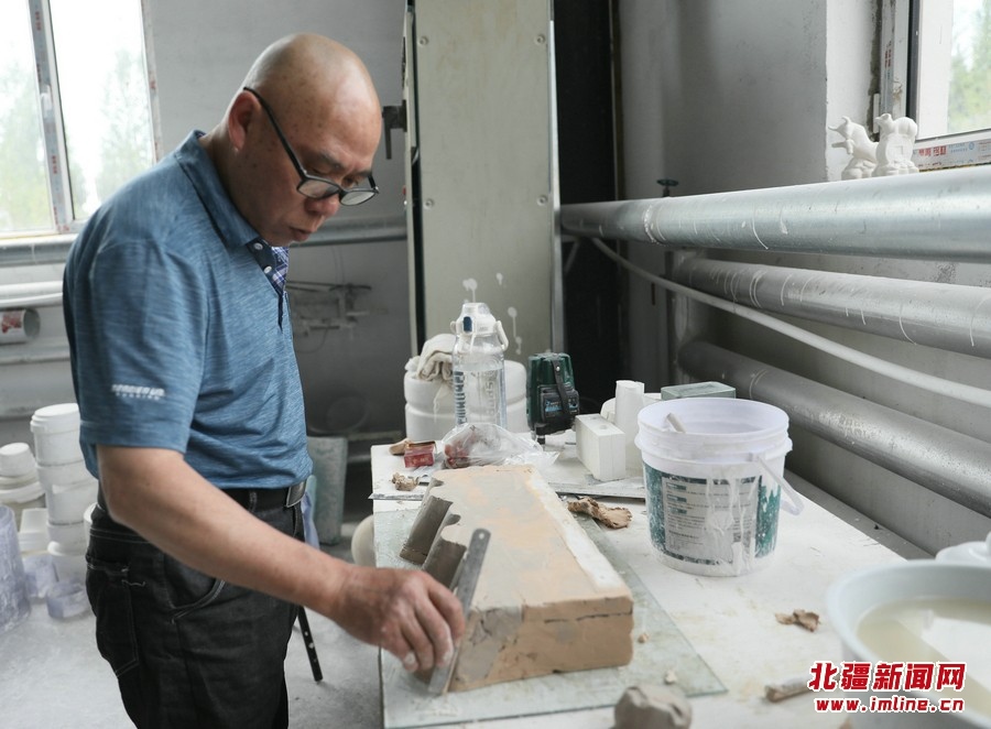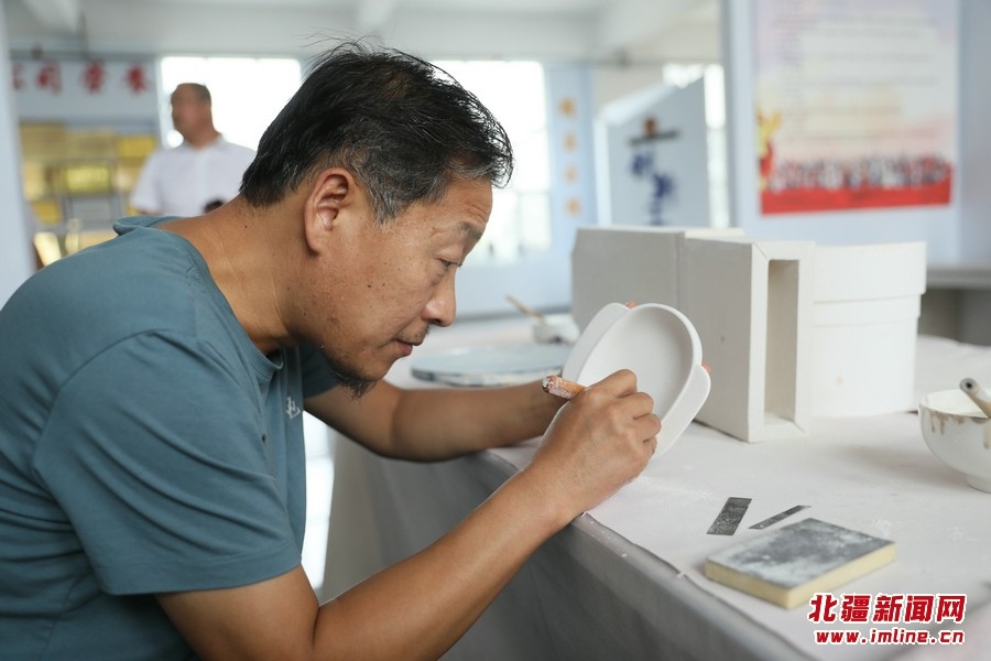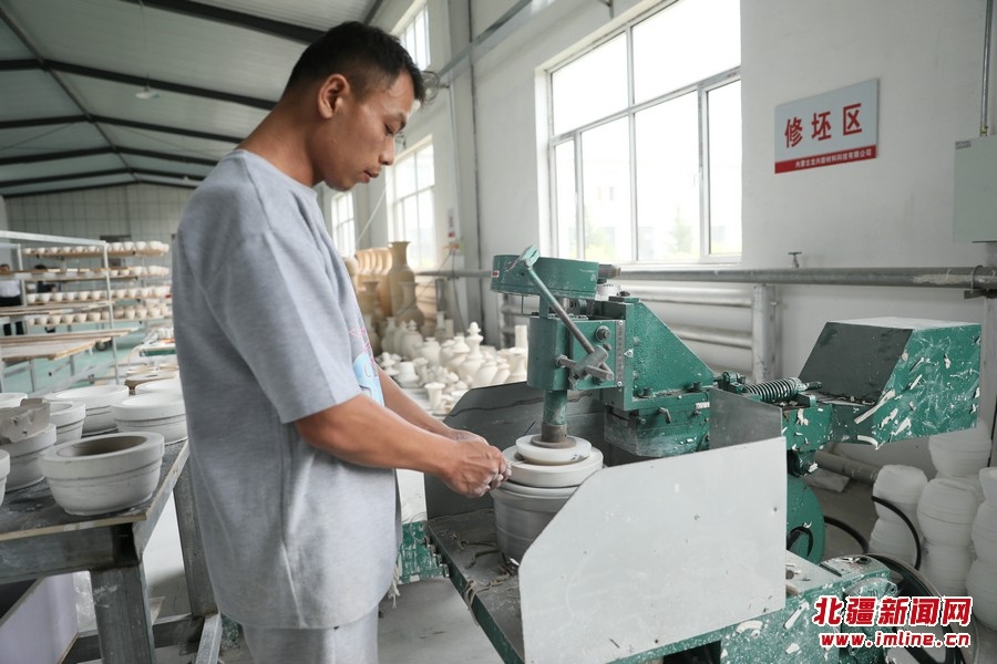 7月26日,內蒙古興和縣龍興陶瓷產業(yè)園,工作人員正在加工制作陶瓷產品。