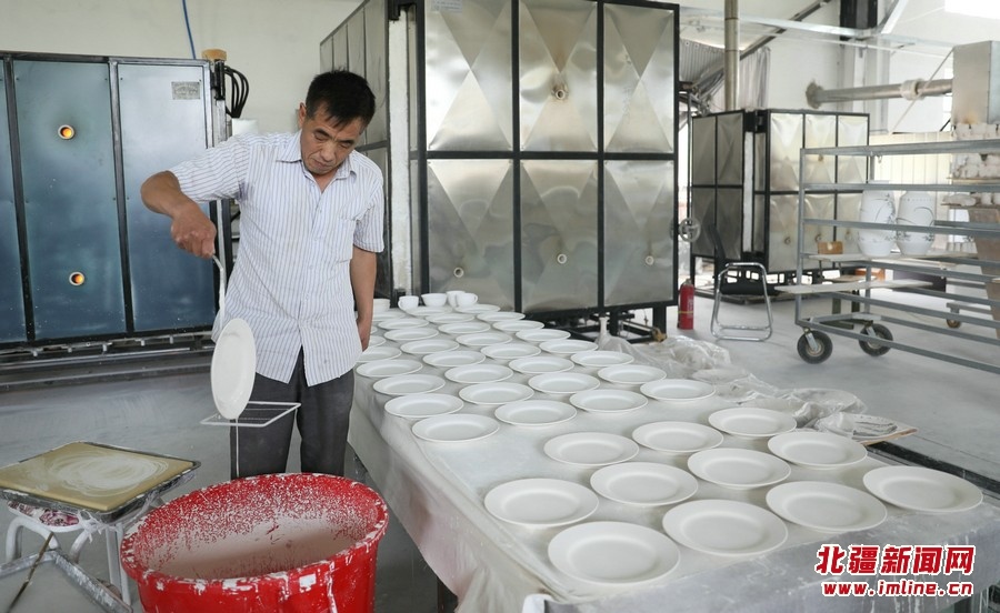壓胚、印坯、曬坯、繪畫、上釉、燒制……經過一道道嚴格的工序,溫潤細膩,精美絕倫,獨具特色的餐具、茶具、酒具以及各類藝術陳設陶瓷,呈現(xiàn)在人們面前。