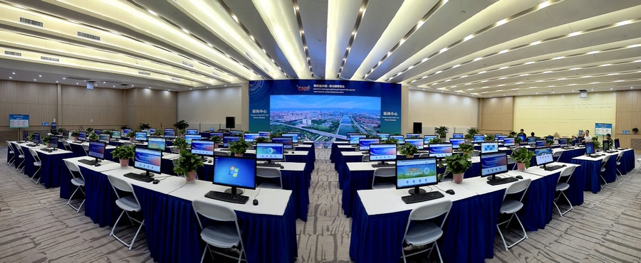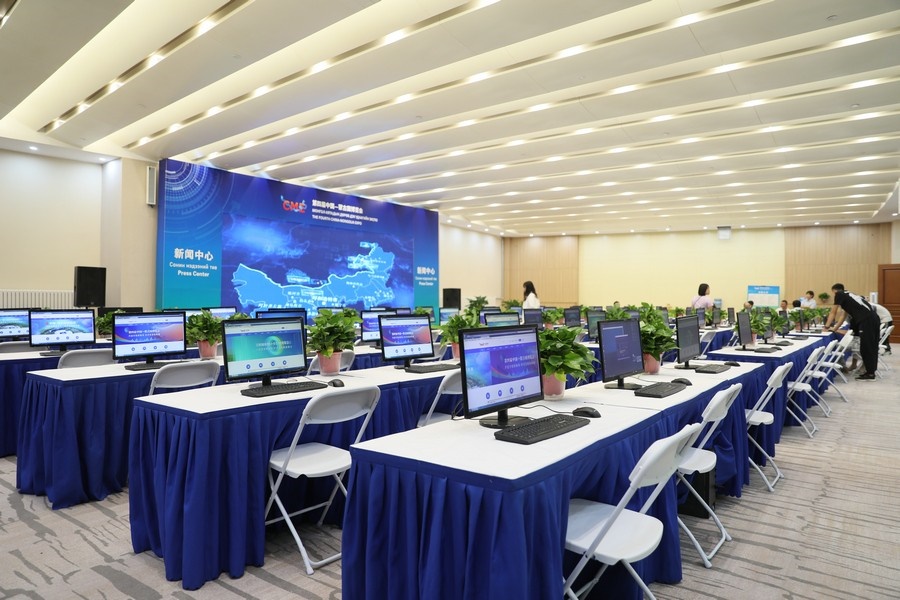 4日下午,記者在敕勒川國際會展中心2層環(huán)廊看到,新聞中心內(nèi)整齊地擺放著電腦、桌椅,兩邊茶歇區(qū),已備好零食和飲用水,供中外記者自行取用。