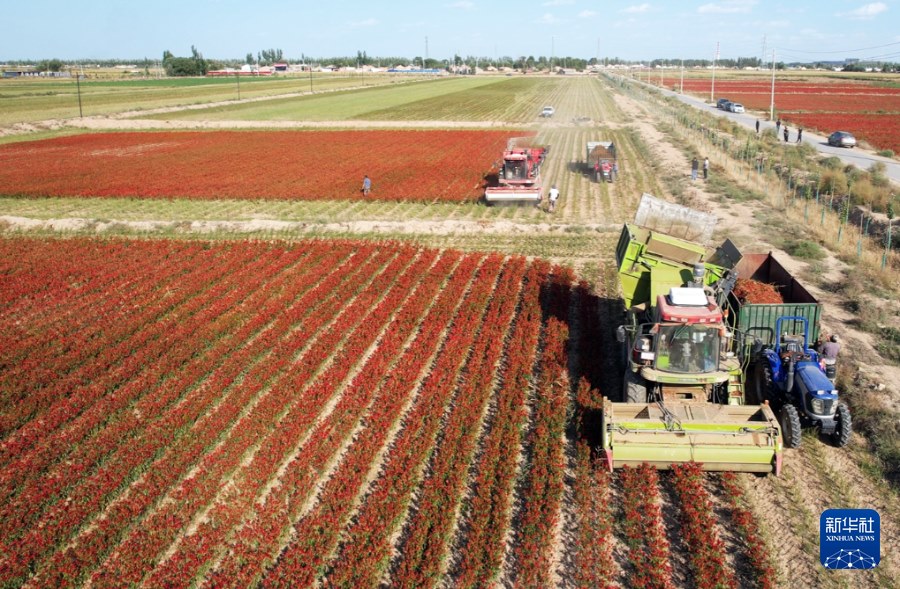 ??連日來,在巴彥淖爾市臨河區(qū)白腦包鎮(zhèn)西海村辣椒種植基地,農機手駕駛收割機集中收獲辣椒,把一個個火紅的辣椒裝到拖拉機上。西海村村民田來義說:“今年我家種了25畝辣椒,不僅簽了訂單,還有專家進行技術指導,預計畝產700公斤以上,每畝純收入在4500元左右。”