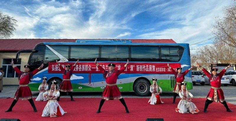 弘揚北疆文化 服務(wù)各族群眾——全區(qū)烏蘭牧騎“學(xué)·創(chuàng)·演”新創(chuàng)作品展演興安盟科右中旗巴彥呼舒鎮(zhèn)烏遜嘎查活動現(xiàn)場