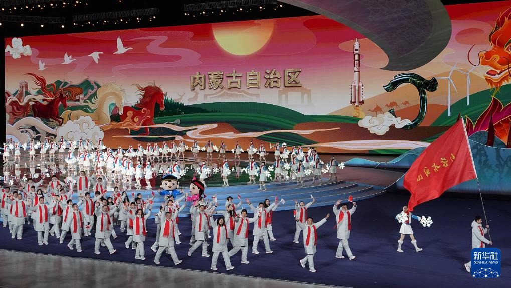 ??2月17日,內(nèi)蒙古自治區(qū)體育代表團(tuán)在開幕式上入場。新華社記者 李欣 攝