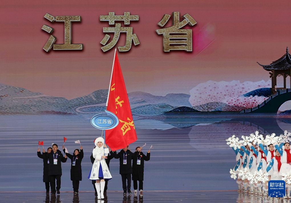 ??2月17日,江蘇省體育代表團(tuán)在開幕式上入場。新華社記者 李博 攝