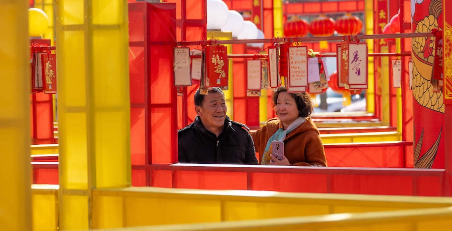 在九曲中,有九道門,其中八道門可以猜燈謎,猜對后換一張祈福卡來到吉祥門進行許愿祈福。