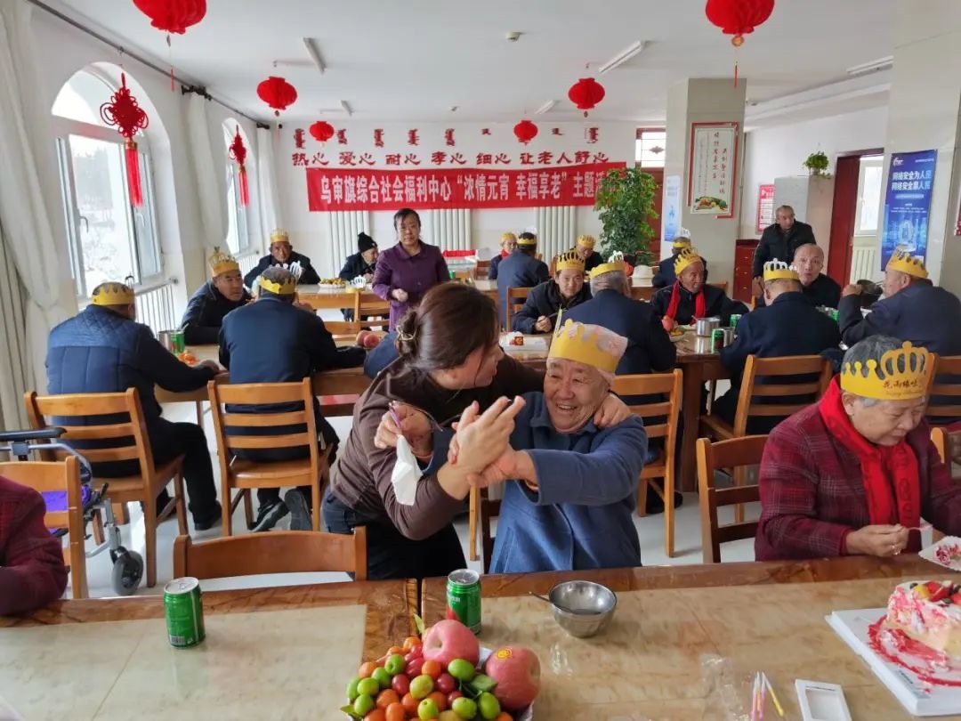 鄂爾多斯市烏審旗綜合社會福利中心為壽星過生日。