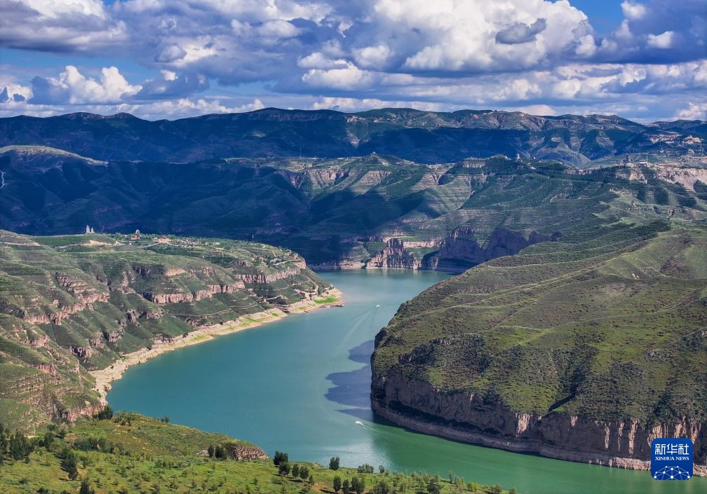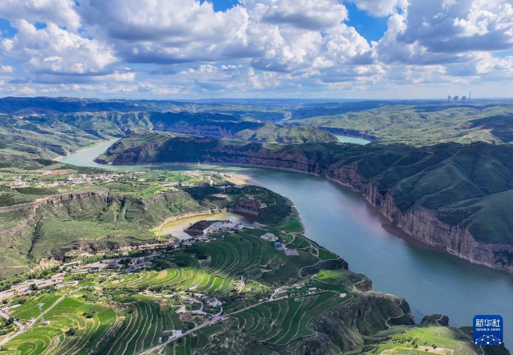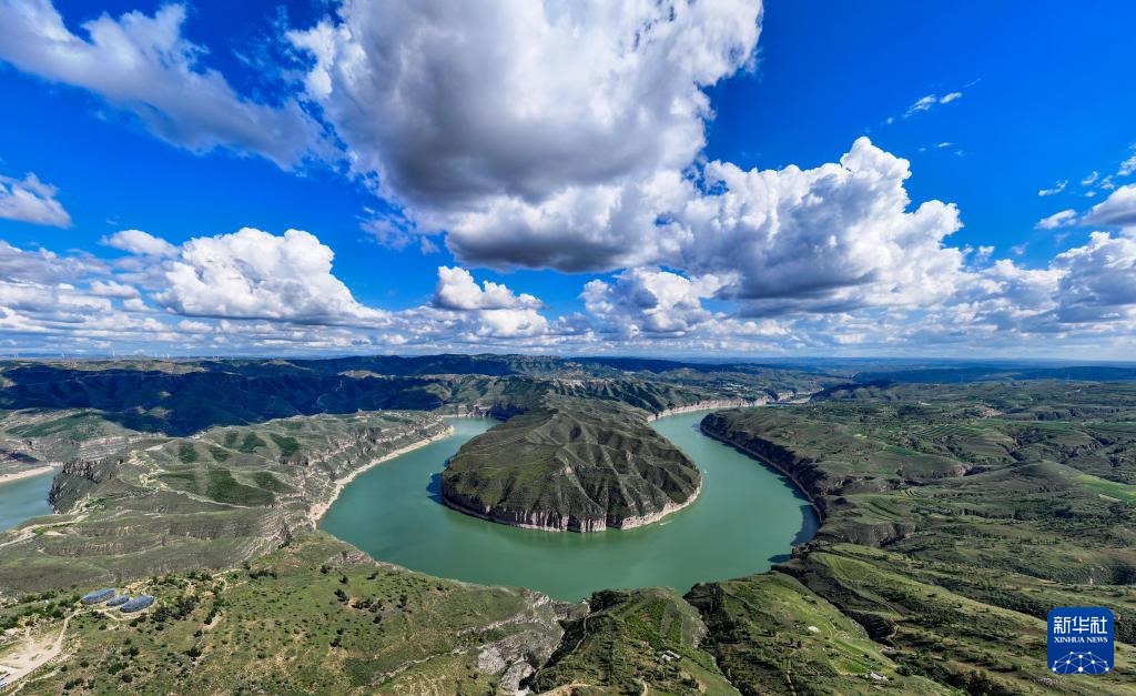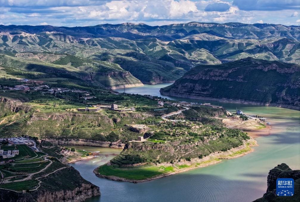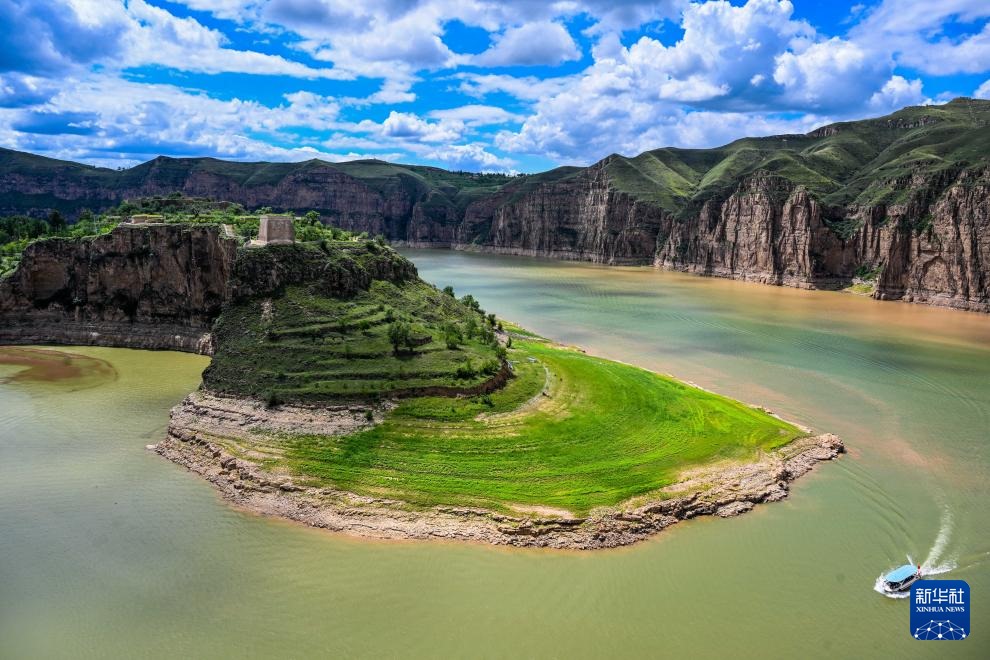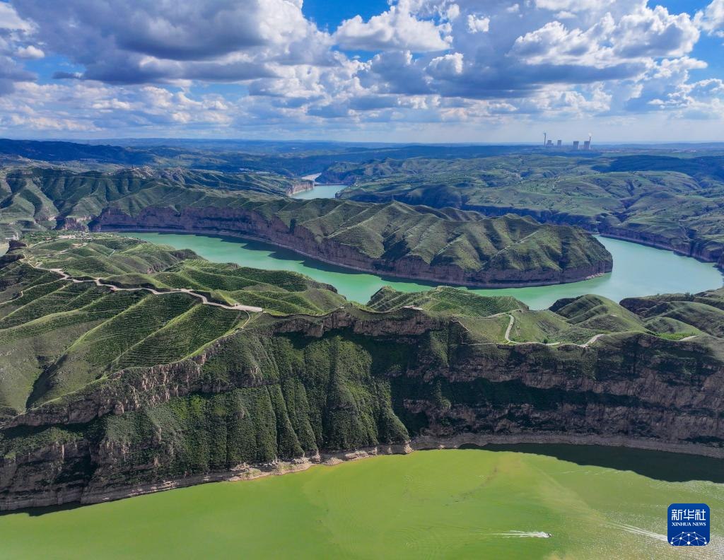??這是8月12日拍攝的黃河老牛灣風(fēng)光(無人機(jī)照片)。